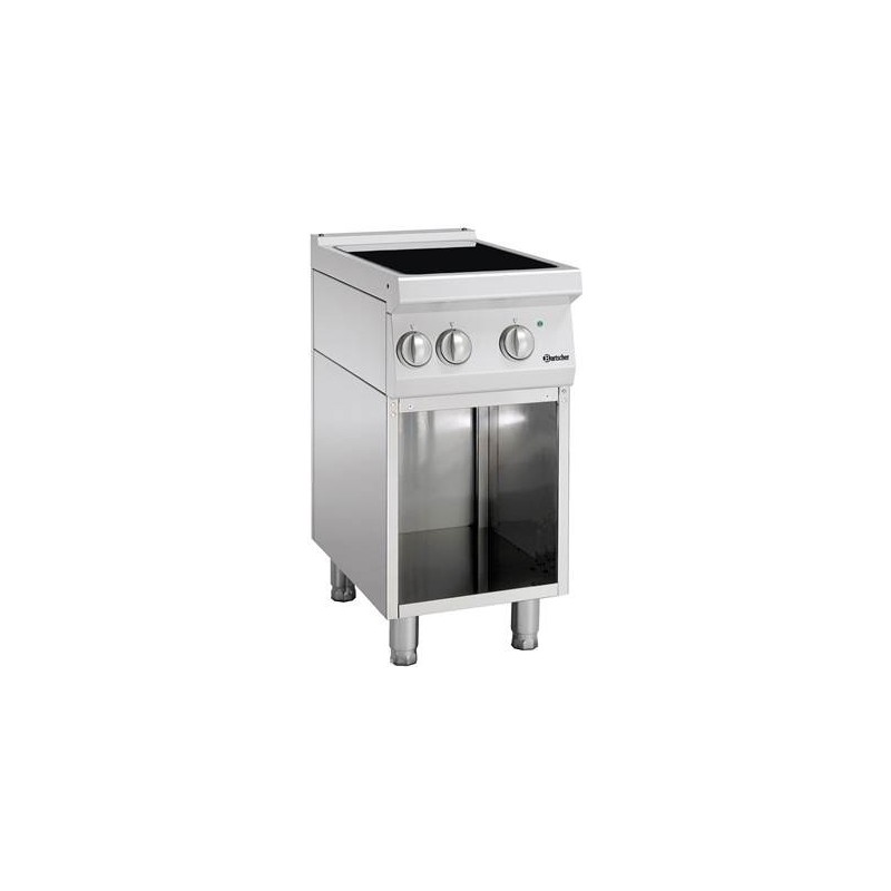 Fourneau à induction à 2 zonesavec soubassement ouvertCuisson ultra rapideConsommation d'énergie réduiteFaible chaleur ambianteEntretien facileHaut rendementZones de cuisson réglables séparémentSurface en vitrocéramique SchottSérie 700 ClassicAcier inoxydable 18/10Dimensions : L 400 x P 700 x H 850-900 mmPuissance : 10 kW / 400 V 50/60 Hz 3 NACVitrocéramique 350 x 560 mm, 2 x 5 kWBobines d'induction Ø 230 mmPoids : 51 kg
