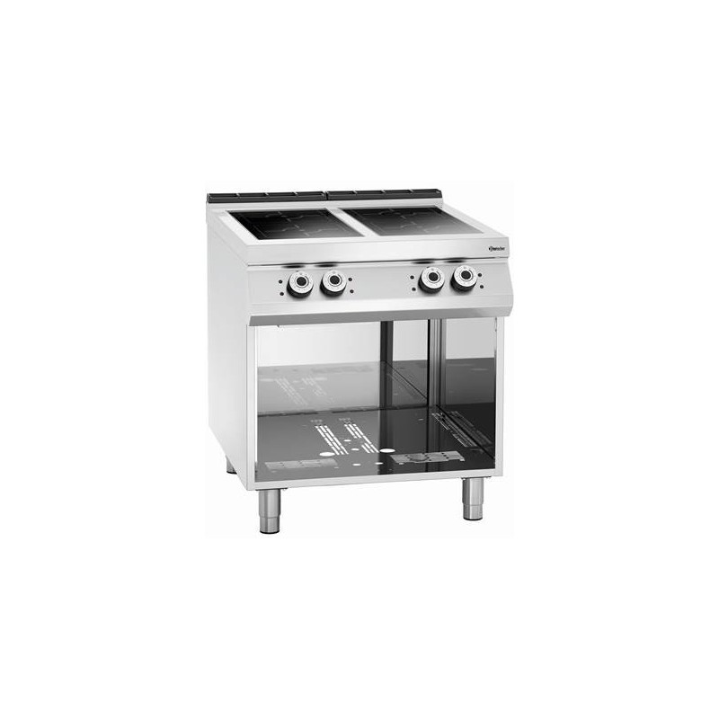 Cuisinière induction Série Masteravec soubassement ouvertPlaque induction ultra rapide4 foyers induction indépendantsHaut rendement, économiqueDéperdition chaleur minimale