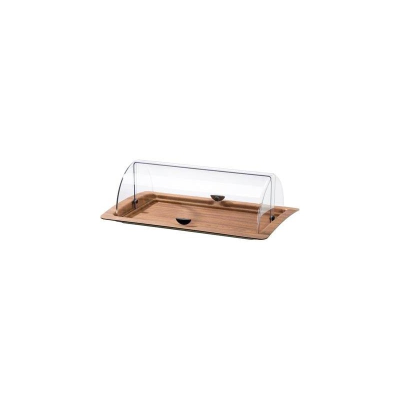Vitrine pour buffetMatière synthétique aspect boisCouvercle plastique, amovibleDimension interne utile : L 420 x P 240 mmDimensions : L 545 x P 345 x H 170 mmLa vitrine pour buffet s'ouvre des 2 côtés.Poids : 1,7 kg