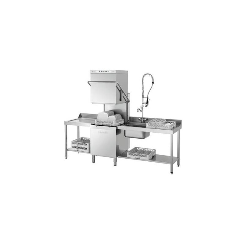 Plus hygiénique et plus économique - le lave-vaisselle à capotoptimisé se distingue par son système d'évacuation innovant,un système de chauffe-eau économique, une pompe DuoFloefficace et un système de levage facile à utiliser.Pieds réglables en hauteur : oui Hauteur réglable de : 1535 mmHauteur réglable jusqu'à : 1600 mmHauteur avec le capot ouvert : 2055 - 2120 mm Hauteur max. des verres : 440 mm Hauteur max. des assiettes : 440 mm Non fourni : Table d'arrivée/de sortie, prérangement Puissance : 6.7 kWTension : 400 V Fréquence : 50 Hz Raccord d'appareil : 3 NAC Chauffage du chauffe-eau : 6 kWChauffage du réservoir : 2.5 kWÉcoulement de l'eau : Ø 28 mm Protection contre le fonctionnement à sec : oui Témoin lumineux de contrôle : Marche/arrêt Chauffe Pompage Programmes I / II / III / fonctionnement continu Automatique Interrupteur de marche/arrêt : oui Pompe à eau savonneuse : non Adoucisseur d'eau : non Pompe doseuse pour le rinçage : oui Contacteur de porte : oui Thermostat de sécurité : oui Pompe doseuse pour le détergent : non Dimensions du panier : 500 x 500 mm Durée de fonctionnement : 60 / 120 / 180 secondes Puissance / heure max. : 60 paniers Nettoyage automatique : non Rinçage à froid : non À double paroi : non Contenance du réservoir : 22 litre(s)Consommation d'eau à 2 bars : 2,4 litres Pression de l'eau : 2 - 4 bars rrivée d'eau : G 3/4'' Compris : 1 panier universel 2 paniers à assiettes 1 égouttoir à couverts Bagues d'étanchéité de rechange pour tuyau d'alimentation Propriétés : Température de l'arrivée d'eau : 50 °C à 60 °C Système de levage ELS (levage maximal avec une force minimale) Pompe DuoFlo (pertes plus faibles lors du pompage) Système d'économie d'énergie (le chauffe-eau se met uniquementen marche lorsque c'est nécessaire) Système d'évacuation EDS Réservoir plat avec grand filtre Réservoir à double paroi Nombre de programmes de lavage : 4 Matériau : CNS 18/10 Convient à un usage professionnel continu : oui Remarque importante : - Largeur : 725 mmProfondeur : 955 mmHauteur : 1535 mmPoids : 98.5 kg