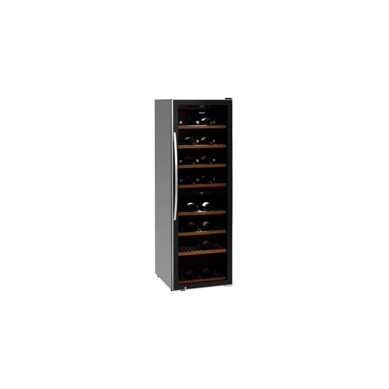 Avec son design élégant et son compresseur silencieux, le réfrigérateurà vin de qualité supérieure est parfait pour les bars et les restaurants.Couleur : Noir Type de vitrage : Double vitrage Verre trempé isolant avec filtre UV Nombre de zones de température : 2 Plage de température : En haut : 5 °C à 20 °C En bas : 5 °C à 20 °C Contenance : 453 litres (en haut : 219 litres, en bas : 234 litres) Contenance : 180 bouteilles (en haut : 80 bouteilles, en bas : 100 bouteilles) Thermostat : oui Nombre de tablettes intermédiaires : En haut : 4 En bas : 4 Type de tablette intermédiaire : Tablettes de conservation en bois À roulement à billes Sortant de 275 mm Dimensions des tablettes intermédiaires :1 x L 505 x P 425 mm 7 x L 505 x P 440 mm Tablettes intermédiaires réglables en hauteur : non Affichage numérique : oui Commande : Tactile Électronique Réfrigérant : R600a Réfrigération : Compresseur Isolation : Thermique Classe de climat : ST Température ambiante : 16 °C à 38 °C Classe d'efficacité énergétique : C Consommation énergétique : 293 kWh / anFonction de décongélation automatique : oui Évaporation de l'eau de condensation : oui Ventilateur : Actif Verrouillable : oui Prêt à être monté : non Nombre de portes : 1 Butée de porte : À droite Butée de porte interchangeable : non Type de porte : Porte à battant, verre Peids réglables en hauteur : non Éclairage : LED Interrupteur de marche/arrêt : oui Puissance : 0.15 kWTension : 220-240 V Fréquence : 50/60 Hz Matériau : Acier Laqué Verre Convient à un usage professionnel continu : oui Remarque importante : - Largeur : 600 mmProfondeur : 750 mmHauteur : 1860 mmPoids : 86.35 kg