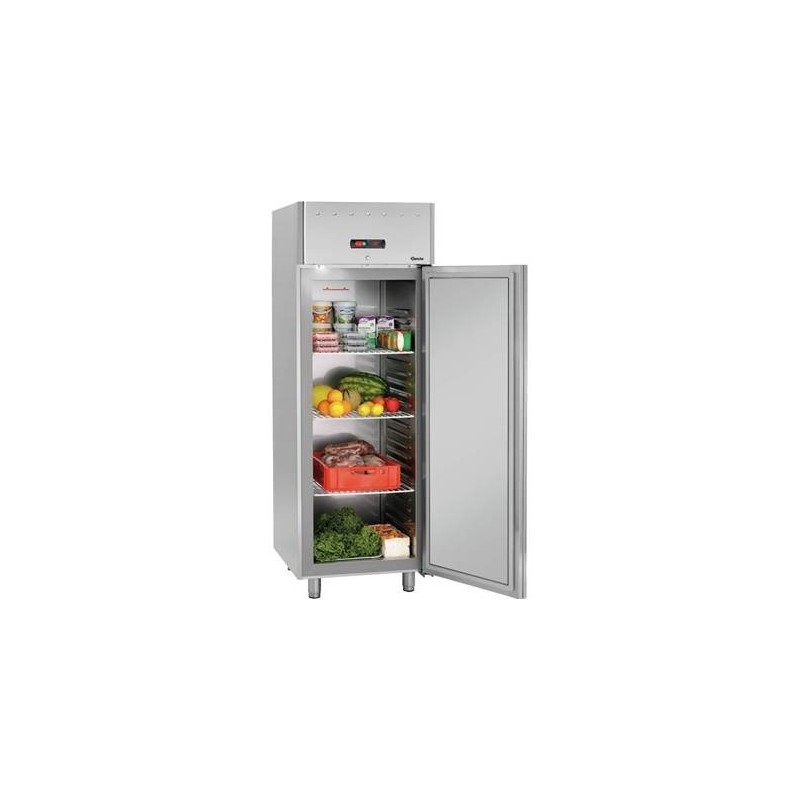 Réfrigérer sans compromis - la technologie Inverter intégrée de ceréfrigérateur d'une contenance de 700 litres permet d'allonger sa longévité,de réduire les variations de température et de consommer moins d'énergieavec seulement 337 kWh/an - classe d'efficacité énergétique A.Hauteur réglable de : 2020 mmHauteur réglable jusqu'à : 2065 mmGastronorm : 2/1 GN Puissance : 0.12 kWTension : 230 V Fréquence : 50 Hz Peids réglables en hauteur : oui Réglage de la température : Par intervalles de 0,1 °C Plage de température de : -2 °CPlage de température jusqu'à : 8 °CType de porte : Porte(s) à battant Butée de porte : À droite Butée de porte interchangeable : non Commande : Électronique Témoin lumineux de contrôle : Marche/arrêt Prêt à l'emploi Température Ventilateur Compresseur Dégivrage Nettoyage du condensateur filtrant Classe de climat : 5 Réfrigération : Air ventilé Réfrigérant : R134a / 0,18 kg Affichage numérique : oui Éclairage intérieur : oui Isolation : Mousse de polyuréthane, 83 mm Largeur de la tablette intermédiaire : 530 mmProfondeur de la tablette intermédiaire : 650 mmTablettes intermédiaires réglables en hauteur : oui Fonction de décongélation automatique : oui Évaporation de l'eau de condensation : oui Interrupteur de marche/arrêt : oui Type de tablette intermédiaire : Grille, revêtue de plastique Classe d'efficacité énergétique : A Consommation énergétique : 337 kWh / anVerrouillable : oui Propriétés : Éclairage LED Technologie Inverter Rails de tablettes préformés Température ambiante : 10 °C à 40 °C Thermostat : oui Couleur : Argenté Contenance : 700 litre(s)Matériau à l'intérieur : Acier inoxydable Nombre de tablettes intermédiaires : 3 Nombre de portes : 1 GWP : 1430 Matériau : Acier inoxydable Convient à un usage professionnel continu : oui Remarque importante : - Largeur : 700 mmProfondeur : 830 mmHauteur : 2025 mmPoids : 130.0 kg