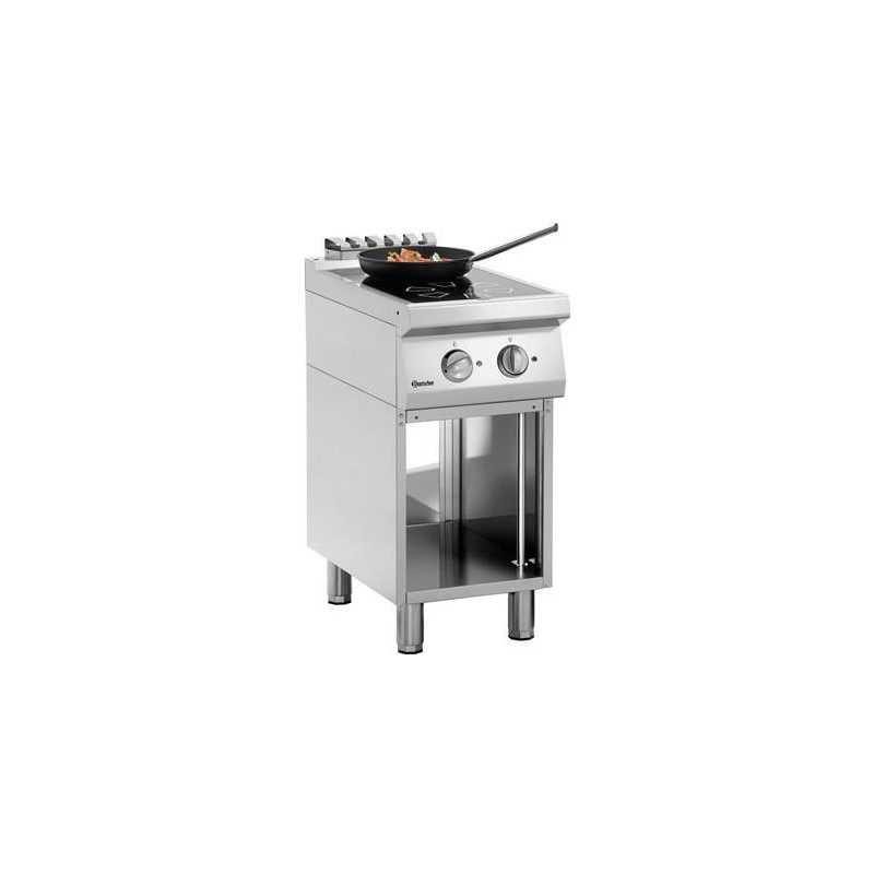 Le fourneau à induction pour les professionnels de la cuisine - grâceaux bobines d'induction puissantes de 5 kW, cet appareil avec chauffageinstantané et 2 zones de cuisson est immédiatement prêt à l'emploi.Type de support : Ouvert Largeur du support : 370 mmProfondeur du support : 490 mmHauteur du support : 405 mmHauteur réglable de : 850 mmHauteur réglable jusqu'à : 900 mmMatériau de la surface de cuisson : SCHOTT CERAN® Nombre de niveaux de puissance : 9 Reconnaissance de casserole : oui Degré de protection : IPX4 Tension : 400 V Fréquence : 50/60 Hz Raccord d'appareil : 3 NAC Type : Appareil fixe Puissance : 10 kWPeids réglables en hauteur : oui Propriétés : Filtre à graisse en dessous des zones de cuisson Répartition des zones de cuisson : 2 x 5 kW Taille des zones de cuisson : Ø 220 mm Compris : - Série : 700 Classic Mode de fonctionnement : Électrique Type de zones de cuisson : Induction Nombre de zones de cuisson : 2 Matériau : CNS 18/10 Convient à un usage professionnel continu : oui Remarque importante : - Largeur : 400 mmProfondeur : 700 mmHauteur : 850 mmPoids : 35.6 kg