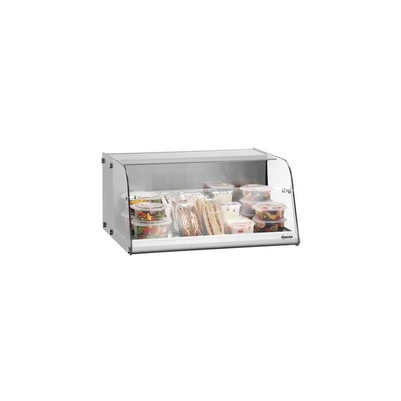 Vitrine réfrigérante pour le libre-service - idéale pour lesboissons froides, les yaourts ou les snacks à conserverau frais comme les sandwichs.Largeur de la surface de pose : 645 mmProfondeur de la surface de pose : 300 mmMatériau de la surface de pose : Acier inoxydable Hauteur utile à l'intérieur : 260 mm Couleur : Argenté Type de vitrage : Simple vitrage Verre trempé : oui Vitre frontale : Arrondi Contenance : 40 litre(s)Plage de température de : 0 °CPlage de température jusqu'à : 6 °CRéglage de la température : Thermostatique Par incréments de 0,1 °C Commande : Électronique Réfrigération : Statique Réfrigérant : R600a Classe de climat : 4 Évaporation de l'eau de condensation : non Fonction de décongélation automatique : oui Éclairage intérieur : non Éclairage : - Affichage numérique : oui Type de porte : - Position de la porte : - Butée de porte : - Butée de porte interchangeable : non Peids réglables en hauteur : non Roulettes de direction : - Interrupteur de marche/arrêt : oui Témoin lumineux de contrôle : Marche/arrêt Propriétés : Dimensions de l'ouverture : L 650 x P 190 mm Fond amovible Compris : - Puissance : 0.105 kWTension : 220-240 V Fréquence : 50 Hz Matériau : Acier inoxydable Verre Convient à un usage professionnel continu : oui Remarque importante : - Largeur : 670 mmProfondeur : 585 mmHauteur : 335 mmPoids : 24.8 kg
