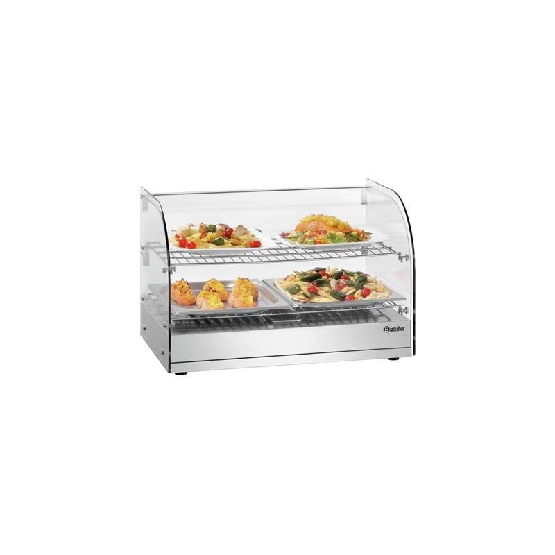 Appareil de table compact pour garder au chaudet présenter les plats chauds – équipé de portes soulevables pratiques.Largeur de la tablette intermédiaire : 520 mmProfondeur de la tablette intermédiaire : 300 mmTablettes intermédiaires réglables en hauteur : non Puissance : 0.8 kWTension : 230 V Fréquence : 50 Hz Plage de température de : 30 °CPlage de température jusqu'à : 90 °CCommande : Manette Bouton Contenance : 45 litre(s)Témoin lumineux de contrôle : Marche/arrêt Chauffe Réglage de la température : En continu Éclairage intérieur : non Éclairage : - Vitre frontale : Arrondi Type de porte : Porte à guillotine Position de la porte : Côté utilisateur Bac d'eau pour l'humidification de l'air : oui Verre trempé : oui Compris : - Propriétés : Tablette inférieure : Grille, chromée Portes à guillotine (L 540 x H 100 mm) avec arrêt et bloque-porte Tiroir de nettoyage Type de chauffage : Chauffé à sec Couleur : Argenté Affichage numérique : non Type de vitrage : Simple vitrage Vitrage sur tout le tour Type de tablette intermédiaire : Grille, chromée Nombre de tablettes intermédiaires : 1 Matériau : Acier inoxydable Verre Convient à un usage professionnel continu : oui Remarque importante : - Largeur : 560 mmProfondeur : 395 mmHauteur : 365 mmPoids : 14.8 kg