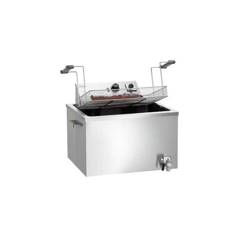 Résistance électrique en acier inoxydable : oui Résistance électrique : Amovible Tension : 400 V Fréquence : 50 Hz Raccord d'appareil : 3 NAC Largeur du panier 1 : 460 mmProfondeur du panier 1 : 305 mmHauteur du panier 1 : 60 mm 8.42 litre(s)Largeur du panier 2 : 420 mmProfondeur du panier 2 : 305 mmHauteur du panier 2 : 90 mm 11.53 litre(s)Bac collecteur de graisse : non Convient à un usage professionnel : oui Série : - Couleur : Argenté Type : Appareil de table Mode de fonctionnement : Électrique Nombre de cuves : 1 Largeur de la cuve : 497 mmProfondeur de la cuve : 397 mmHauteur de la cuve : 300 mmContenance de la cuve : 50 litre(s)Nombre de paniers : 2 Zone froide : oui Thermostat de sécurité : oui Robinet de vidange de la graisse : oui Plage de température de : 0 °CPlage de température jusqu'à : 190 °CCommande : Manette Témoin lumineux de contrôle : Marche/arrêt Chauffe Interrupteur de marche/arrêt : oui Peids réglables en hauteur : non Propriétés : Coins arrondis Robinet d'évacuation avec dispositif de sécurité Poignées de transport latérales 2 niveaux de réglage de la puissance possibles (5 kW / 15 kW) Puissance : 15 kWCompris : 2 paniers Matériau : Acier inoxydable Convient à un usage professionnel continu : oui Remarque importante : - Largeur : 650 mmProfondeur : 630 mmHauteur : 460 mmPoids : 26.6 kg