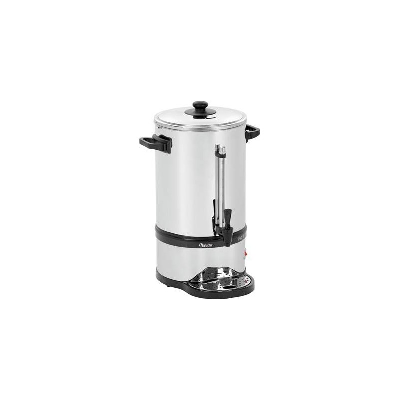 Plus de goût et de flexibilitéGrâce au filtre optimisé en acier inoxydable, vous pouvezdésormais vous faire votre café avec ou sans papier filtre.Contenance : 13.2 litre(s)Fonction de maintien au chaud : oui Couleur : Argenté Noir Temps de percolation : 55 minutes pour 13,2 litres Quantité de percolation minimale : 6 litres (40 tasses) Signal de détartrage : oui Indicateur de niveau de remplissage : oui Puissance max. : 90 - 100 tasses Matériau du filtre : Acier inoxydable Matériau système de chauffe : Acier inoxydable Puissance : 1.6 kWTension : 230 V Fréquence : 50/60 Hz Témoin lumineux de contrôle : Oui Interrupteur de marche/arrêt : oui Propriétés : 2 systèmes de chauffage séparés pourla fonction de préparation et de maintien au chaud La cafetière électrique peut également êtreutilisée sans papier filtre Modèle : Filtre rond Compris : Racloir de nettoyage Matériau : Acier inoxydable Plastique Convient à un usage professionnel continu : oui Remarque importante : - Largeur : 350 mmProfondeur : 375 mmHauteur : 540 mmPoids : 4.6 kg