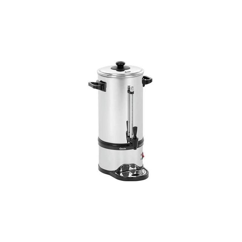 Plus de goût et de flexibilitéGrâce au filtre optimisé en acier inoxydable, vous pouvezdésormais vous faire votre café avec ou sans papier filtre.Contenance : 9 litre(s)Fonction de maintien au chaud : oui Couleur : Argenté Noir Temps de percolation : 50 minutes pour 9 litres Quantité de percolation minimale : 4,5 litres (30 tasses) Signal de détartrage : oui Indicateur de niveau de remplissage : oui Puissance max. : 60 - 72 tasses Matériau du filtre : Acier inoxydable Matériau système de chauffe : Acier inoxydable Puissance : 1.2 kWTension : 230 V Fréquence : 50/60 Hz Témoin lumineux de contrôle : Oui Interrupteur de marche/arrêt : oui Propriétés : 2 systèmes de chauffage séparés pourla fonction de préparation et de maintien au chaud La cafetière électrique peut également êtreutilisée sans papier filtre Modèle : Filtre rond Compris : Racloir de nettoyage Matériau : Acier inoxydable Plastique Convient à un usage professionnel continu : oui Remarque importante : - Largeur : 310 mmProfondeur : 320 mmHauteur : 540 mmPoids : 3.8 kg