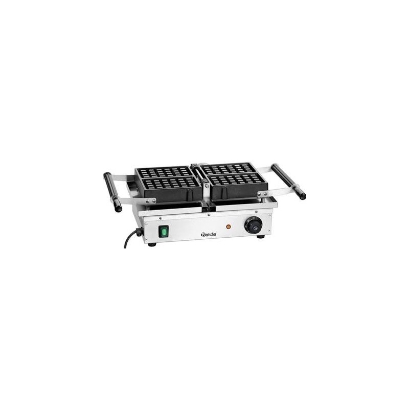 La gaufre de Bruxelles parfaite – croustillante à l‘extérieuret moelleuse à l‘intérieur. La rotation à 180° durant la cuissonpermet de répartir uniformément la pâte.Rotation des plaques : Rotation de 180° à droite/gauche Degré de protection : IPX3 Puissance : 1.5 kWTension : 220-240 V Fréquence : 50/60 Hz Plage de température de : 50 °CPlage de température jusqu'à : 300 °CCommande : Électronique Manette Témoin lumineux de contrôle : Marche/arrêt Chauffe Réglage de la température : Thermostatique Interrupteur de marche/arrêt : oui Matériau des plaques : fonte d‘aluminium Revêtement antiadhésif Forme de gaufre : Gaufre de Bruxelles Taille de gaufre : 165 x 100 mm, hauteur 10 mm Compris : 2 bacs collecteurs, L 215 x P 285 x H 18 mm Modèle de plaque(s) : Fixe Plaques tournantes : oui Affichage numérique : non Nombre d'unités de cuisson : 1 Minuterie : non Programmation : - Matériau : Acier inoxydable Convient à un usage professionnel continu : oui Remarque importante : - Largeur : 525 mmProfondeur : 340 mmHauteur : 250 mmPoids : 14.3 kg