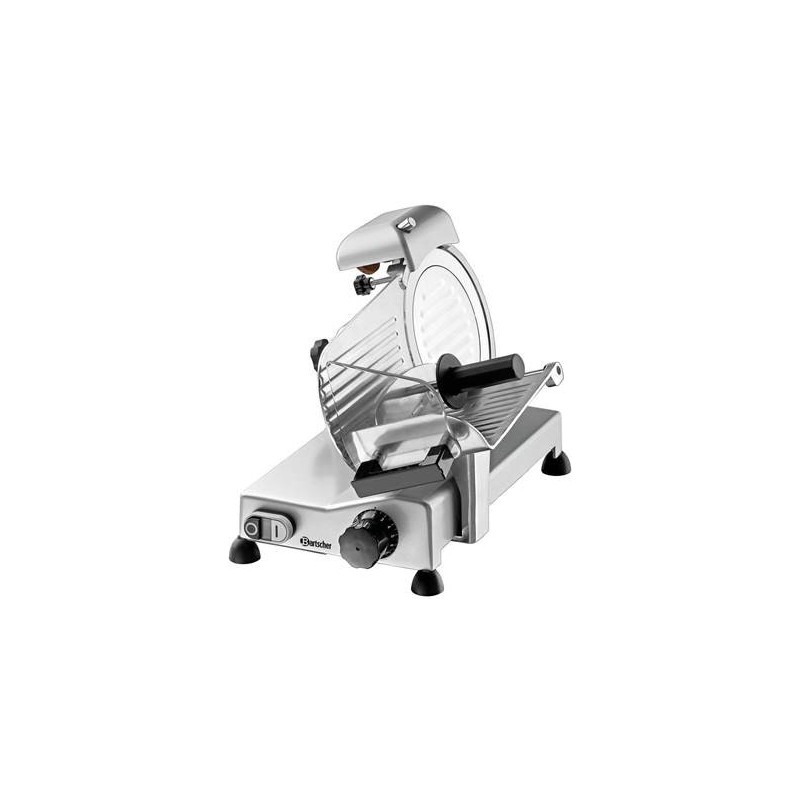 L‘e´quipement de cette trancheuse optimise´e avec une lamede 195 mm se distingue a` plusieurs points de vue par sescaracte´ristiques techniques. La trancheuse en porte-a`-fauxpuissante dispose d‘un bac de re´cupe´ration des restes, d‘unaiguiseur de lame, d‘un syste`me de guidage de coupe ainsique d‘une double protection de la lame et d‘un commutateurmagne´tique pour assurer la se´curite´.Témoin lumineux de contrôle : Marche/arrêt Puissance : 0.11 kWTension : 230 V Fréquence : 50 Hz Interrupteur de marche/arrêt : oui Diamètre de la lame : 195 mmVitesse de rotation max. : 277 t / min.Épaisseur de coupe : 1 - 12 mm Longueur de coupe : 185 mm Hauteur de coupe : 130 mm Avec aiguiseur de lame : oui Modèle : Trancheuse en porte-à-faux / Trancheuse à gravité Conçu pour : Charcuterie Longueur du câble : 1.4 mDegré de protection : IPX3 Commande : Manette Protection de la lame : double Commutateur magne´tique : oui Syste`me de guidage de coupe : oui Bac re´cupe´rateur de restes : oui Mode`le de chariot : 2 poigne´es Matériau : Aluminium Plexiglas Plastique Convient à un usage professionnel continu : oui Largeur : 335 mmProfondeur : 440 mmHauteur : 340 mmPoids : 11.198 kg