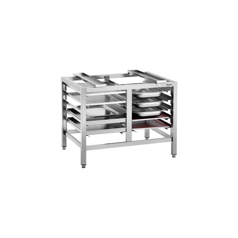 Support stable et solidepour fours combinés plusemplacement pour desgrilles au format GN etau format boulanger• Support fours séries M et E• 10 grilles et plaques 1/1 GN• Pieds réglables en hauteur