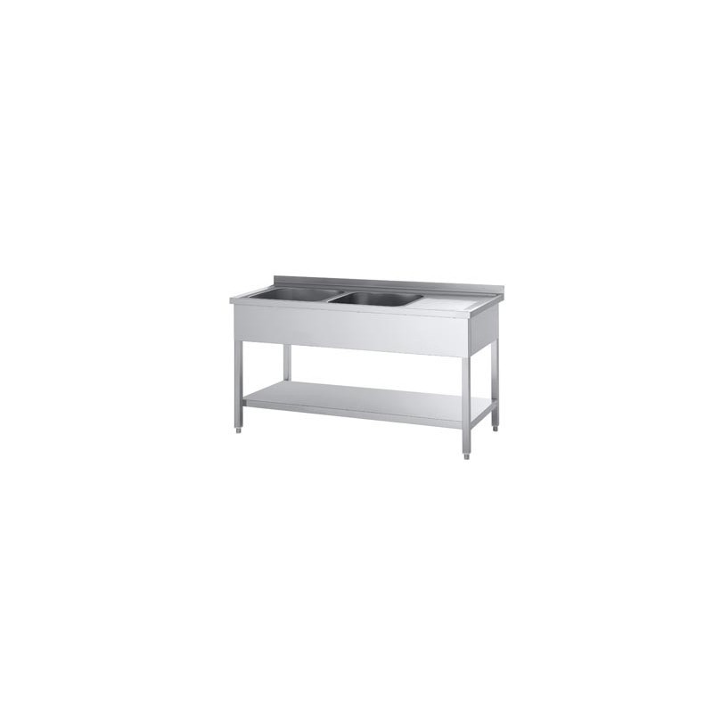 Plonge à 2 bassins avec égouttoir et étagère intermédiaire