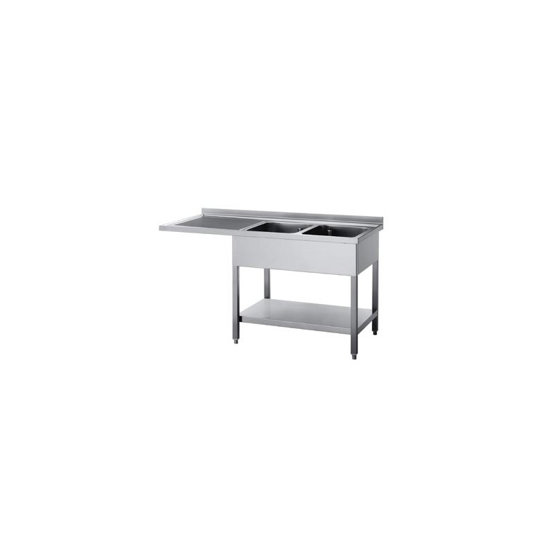 Plonge pour laverie à 2 bassins avec égouttoir/étagère